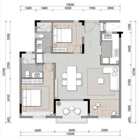 ·主客双卫:两卫生间相邻,管线分布合理,干湿分离;