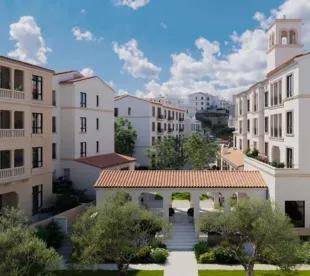 现房销售,含100-130㎡公寓/洋房,户型明亮,入户花园提升得房率。建筑外观建筑融合西班牙式、Artdeco风格与岭南骑楼特色,L型、C型的建筑形态营造多元围合的庭院,建筑的出挑阳台,将街区与河景融入房内,营造度假氛围。