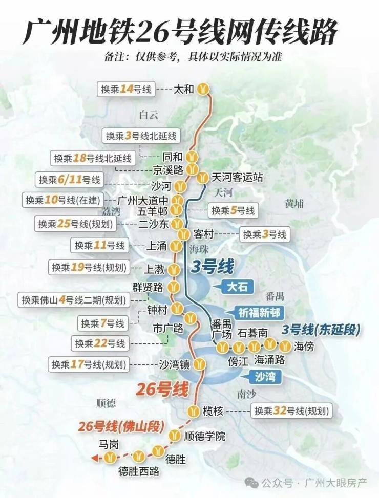 26号线相当于3号线的姐妹线,同时换乘站点极多。从这条线出发,可以快速通达体育系、珠江新城、琶洲、金融城、杨箕、二沙岛等核心产业和商圈带。