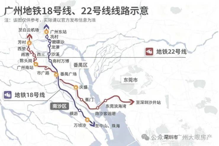 其中,22号线,时速高达160公里,能通达广州南站、白鹅潭商圈、白云机场、番禺广场等核心区域,且能一站换乘18号线。