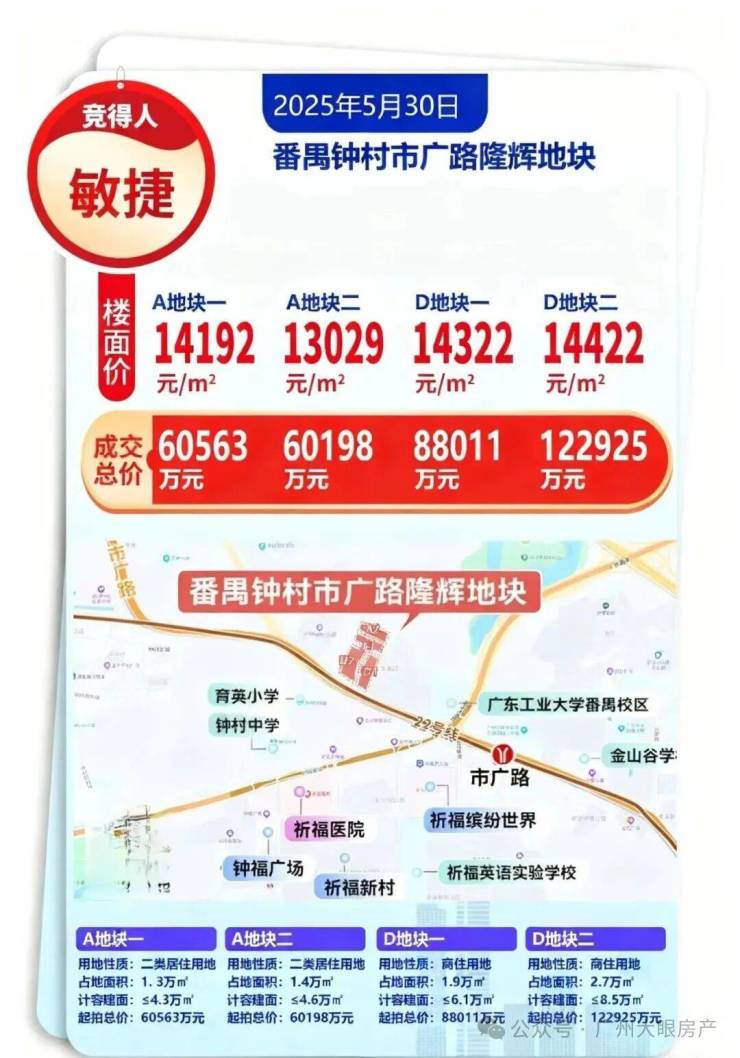 2025年5月底,敏捷拿下番禺市广路隆辉地块,仅两个多月就公布了规划并开放城市展厅,案名定为敏捷·万博金湖壹号。