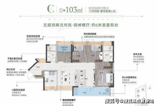 103㎡ 4房2厅2卫,南北通透,4房带主套,灵动户型分寸必用