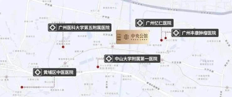 周边2公里内有中山大学附属第一医院东院、广州医科大学附属第五医院等三甲医院,医疗资源充足。