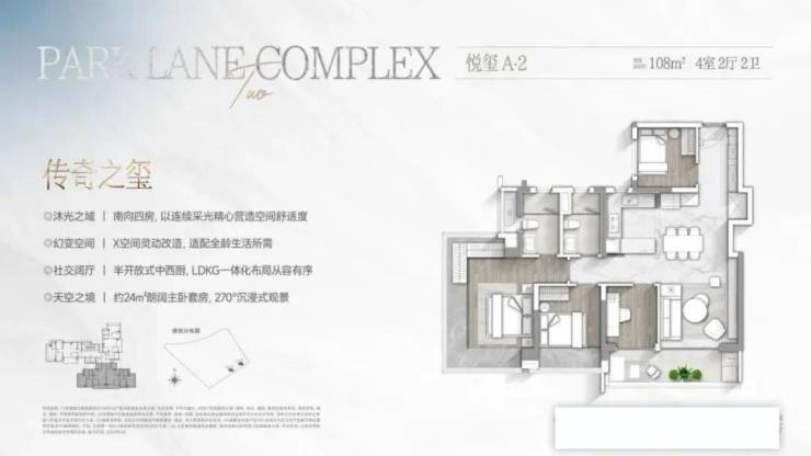 面积段:108-300㎡全南向四房,最小108㎡做到四房,实用率95%;