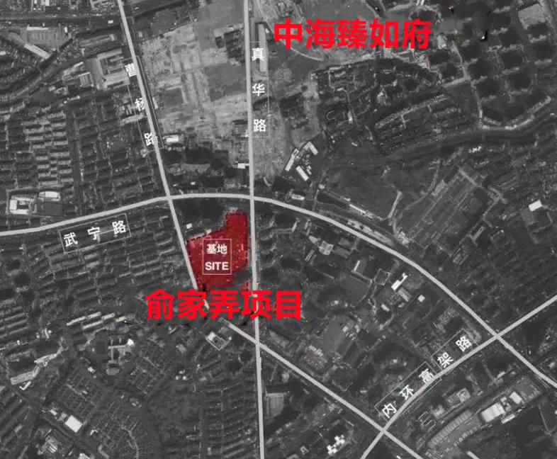 在中海臻如府南侧600多米,还有一个新盘正在建设——俞家弄项目。项目毗邻普陀“一轴两翼”功能布局中武宁路科创发展轴,位于武宁路南侧、曹杨路东侧。