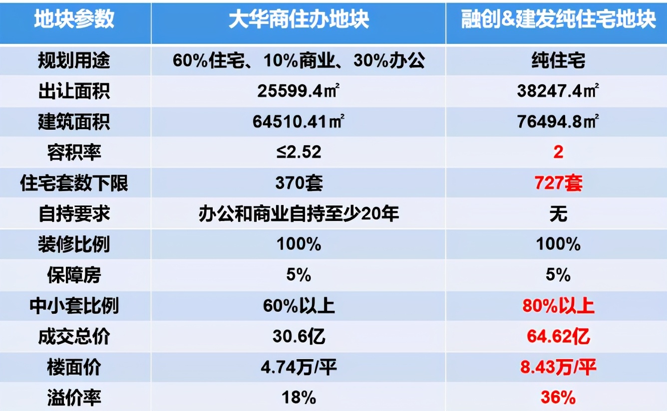 总体而言,两地块都地处中内环之间,其中融创建发地块被7号线地铁穿行而过,但离地铁口并不近,未来小区可能会有噪音影响;大华商住办地块位置好一些,不过因为是一个综合体项目,可能居住环境不够纯粹。