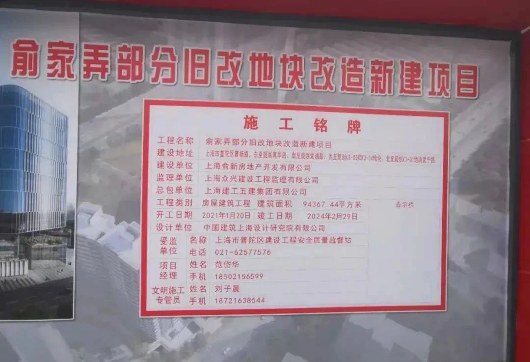 去年9月俞家弄项目奠基,根据施工铭牌今年1月20日已经开工了。