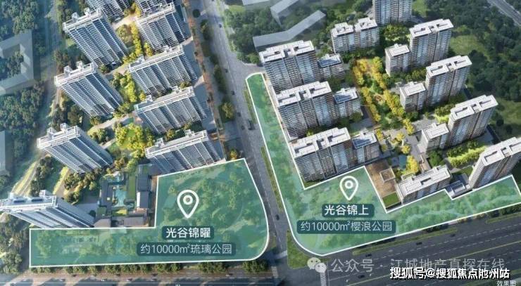 向外,万科·光谷锦曜与万科·光谷锦上隔街相望,以「红线内外一体化」的大盘规划思维,沿着两条市政道路延伸场景,约10000㎡的琉璃公园与约10000㎡的樱浪公园共同构建出约20000㎡的双社区公园体系。