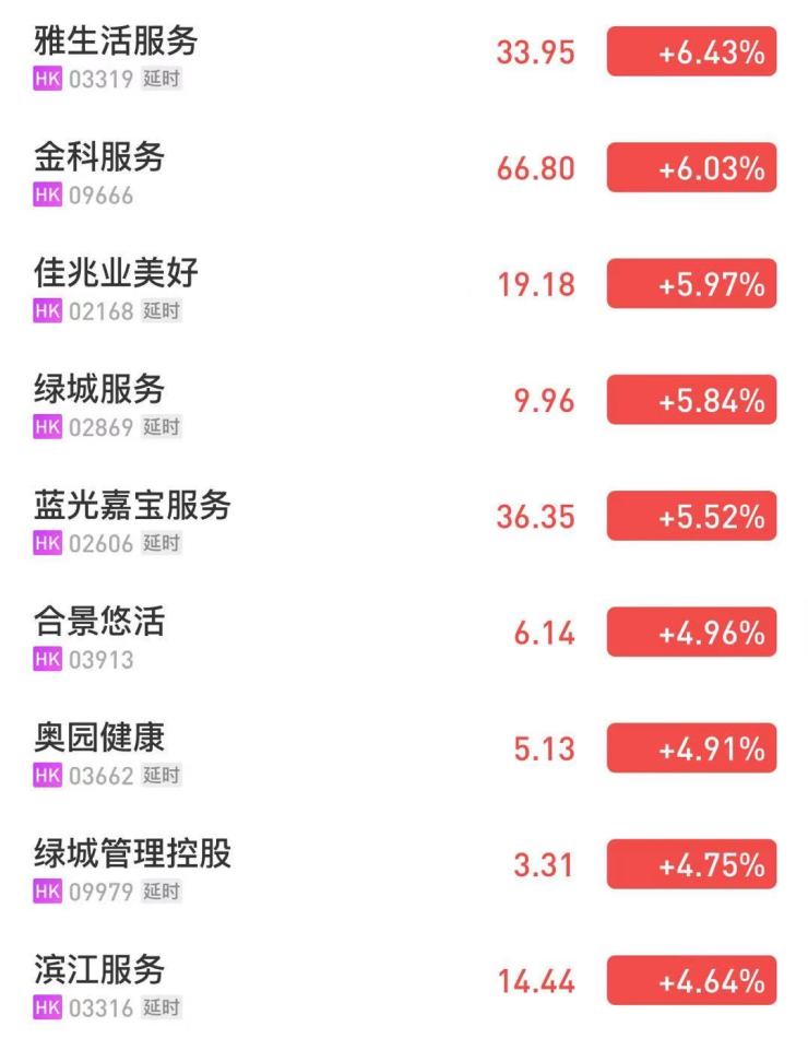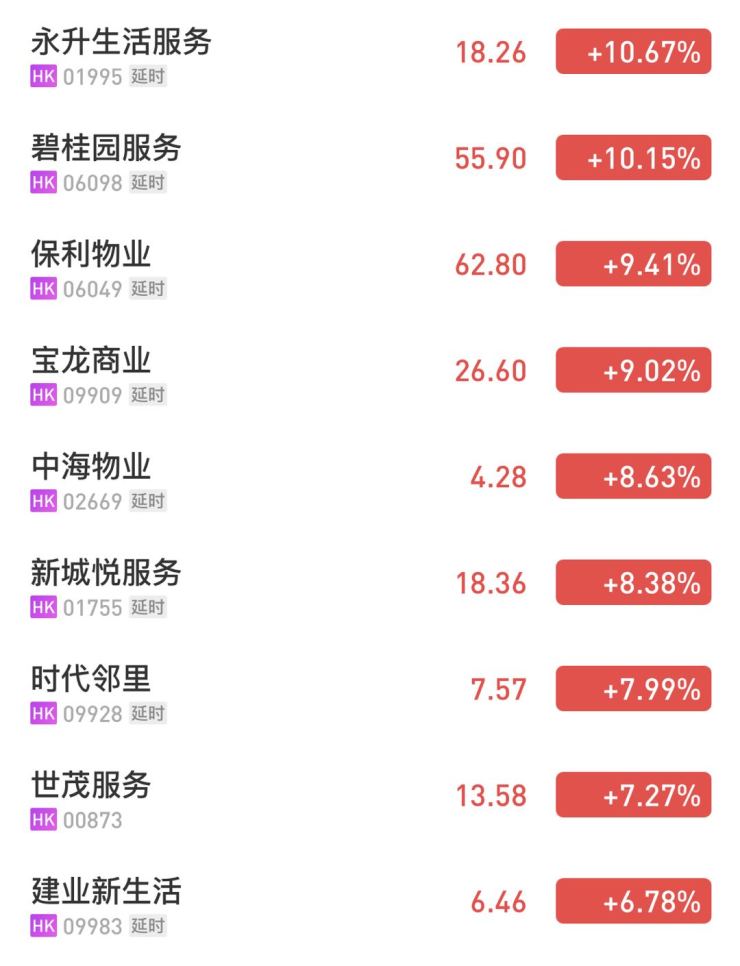 焦点财经快讯(陈盼盼)1月6日,物业股集体高涨。截至发稿,碧桂园服务、永升生活服务涨超10%,保利物业、宝龙商业涨超9%。