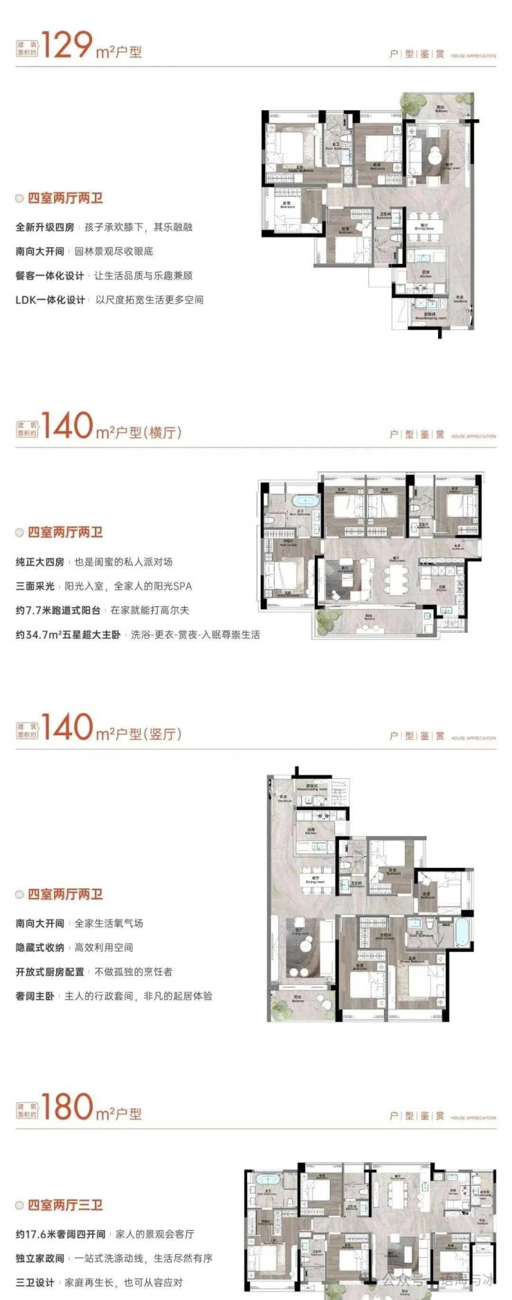 推出的户型设计129方、140方和180方三个面积段。全部都是金融城少有的四房改善类产品,顺应了目前的市场潮流。