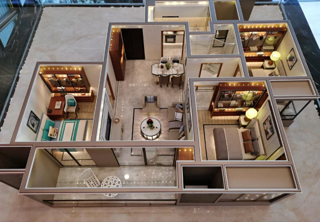 我感受到了这种浓浓的怀旧清怀,荣安也在很多细节设计上去契合九龙半岛的艺术品味。从置业顾问介绍得知,目前在售2个户型。为了很好的和玖悦兰庭对比,我主要看建面86,套内69这个C户型。其实另一个B户(建面91,套内74)差别只在于多了一个卫生间。