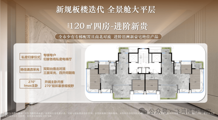 约120㎡户型:专梯入户大四房