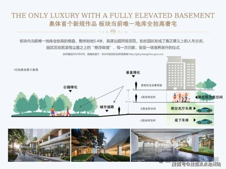 我们是奥博片区第一块新规用地(也是目前板块唯一一块)作为奥体核中核首个“杭州好房子” 新规项目在近5.4米的整体台板之上,以近11米全抬高+架空设计利用架空车库的新做法,在超级底盘上打造“三重垂直维度”的「立体城市社区」。