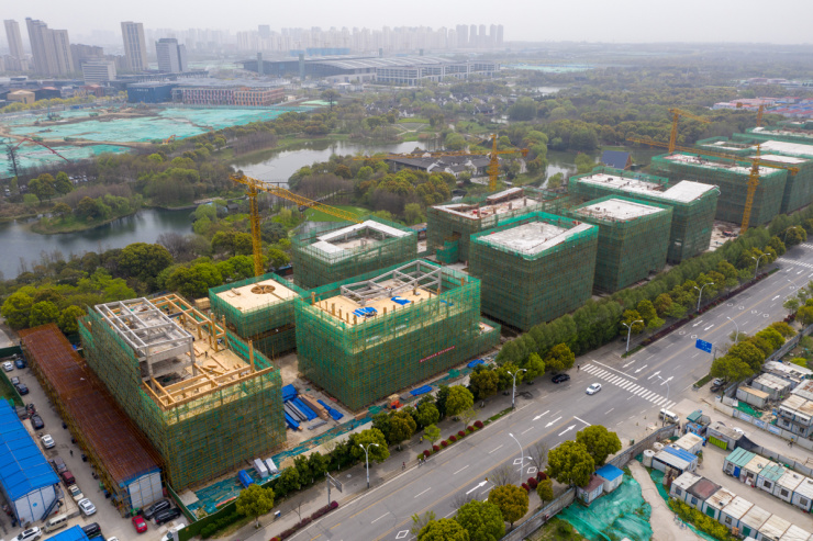 雪浪小镇数据创新中心位于美丽的太湖湖畔-无锡太湖新城,项目东侧紧邻尚贤河湿地公园,周边景色怡人,西侧聚集各类金融产业办公建筑,园区科技金融氛围浓厚。项目总建筑面积约87126平方米,其中地上建筑面积60838平方米,地下建筑面积26288平方米。分A、B两区共五栋办公楼,其中A区部分包含约5780平方米木结构建筑。