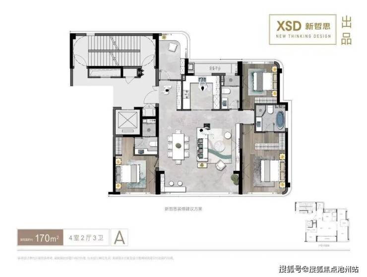 建面约170㎡户型装修效果示意图