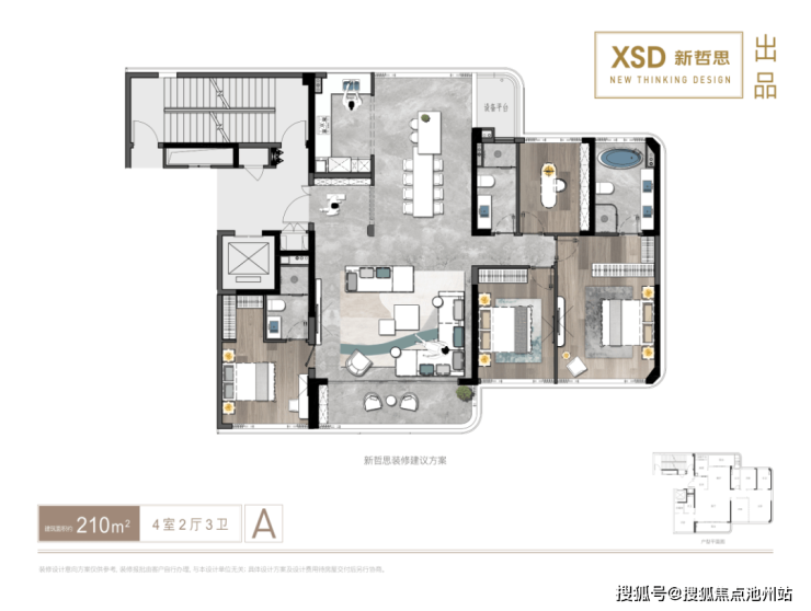 建面约210㎡户型装修效果示意图
