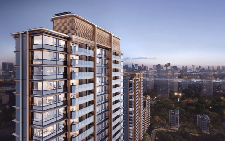 海上·清和玺融合了现代建筑美学与海派文化的元素,从外观上就展现出非凡的气质。将现代美学与海派文化完美融合,还巧妙结合中西方精髓。项目北立面连廊外极致大面积玻璃占比,搭配精致的层间金属飘板的运用,让整体既通透又具润雅之美。