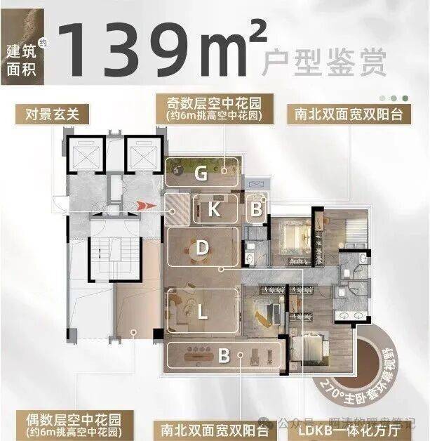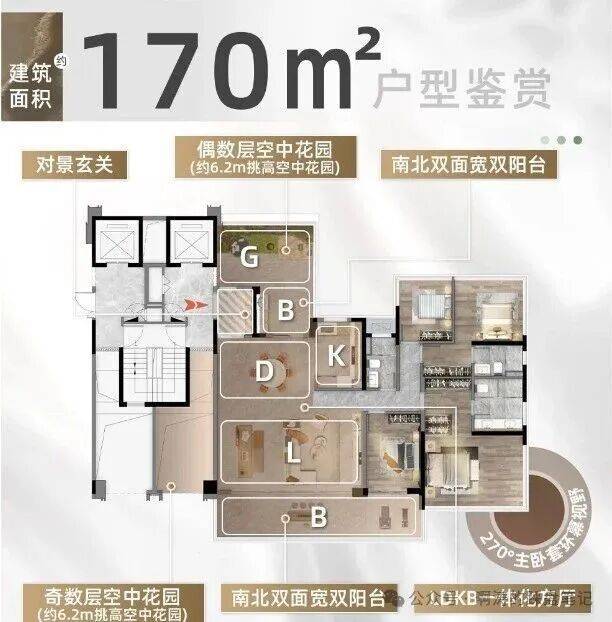 约6米挑高的空中院,圆满都市人的云端田园梦:一梯一户纯(部分户型)粹格局,立序归家礼序:行政主卧套房设计,转角270°环幕全景窗尽享江山湖美景:LDKG一体化巨厅搭配双阳台,从容承载家庭成员的欢聚与成长