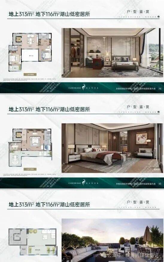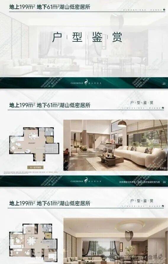 叠墅在售户型:地上199-377㎡、地下61-165㎡的“云缦”组团湖山低密别墅群