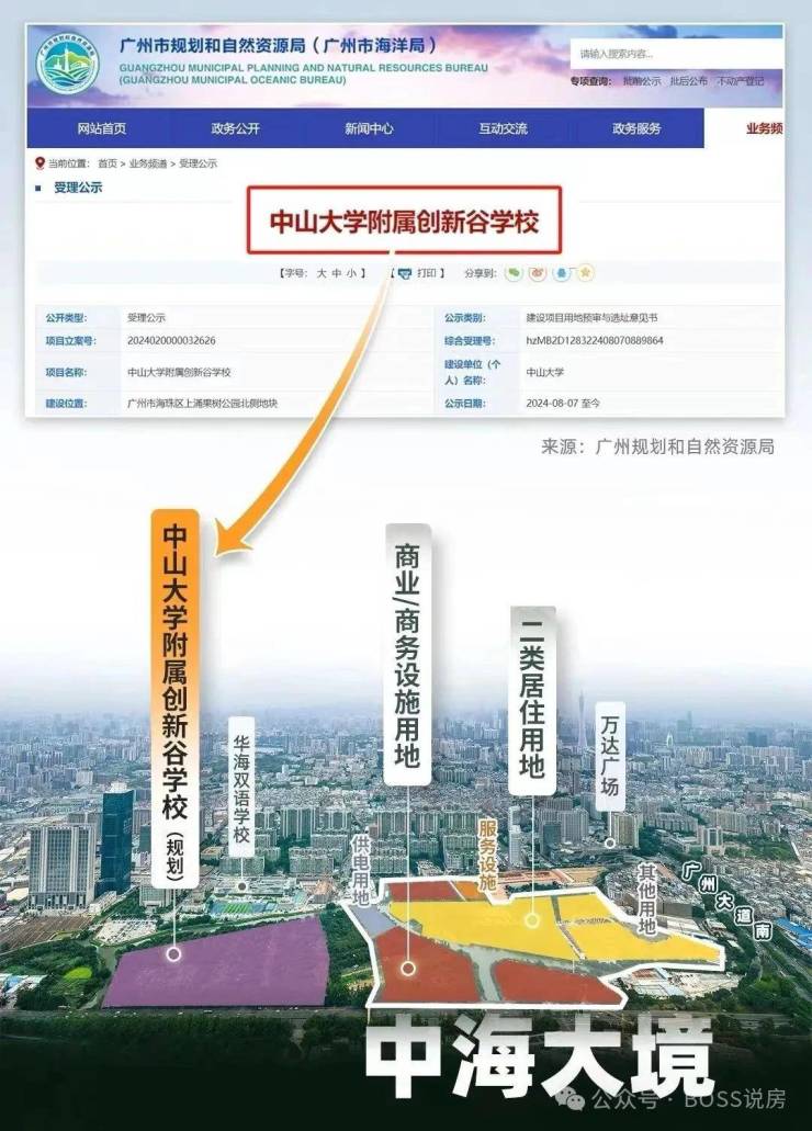 ◎西侧规划有6班幼儿园,18班小学及72班完全中学(已经官宣中山大学附属创新谷学校,建设时间为 2025 年 1 月至 2027 年 9 月)