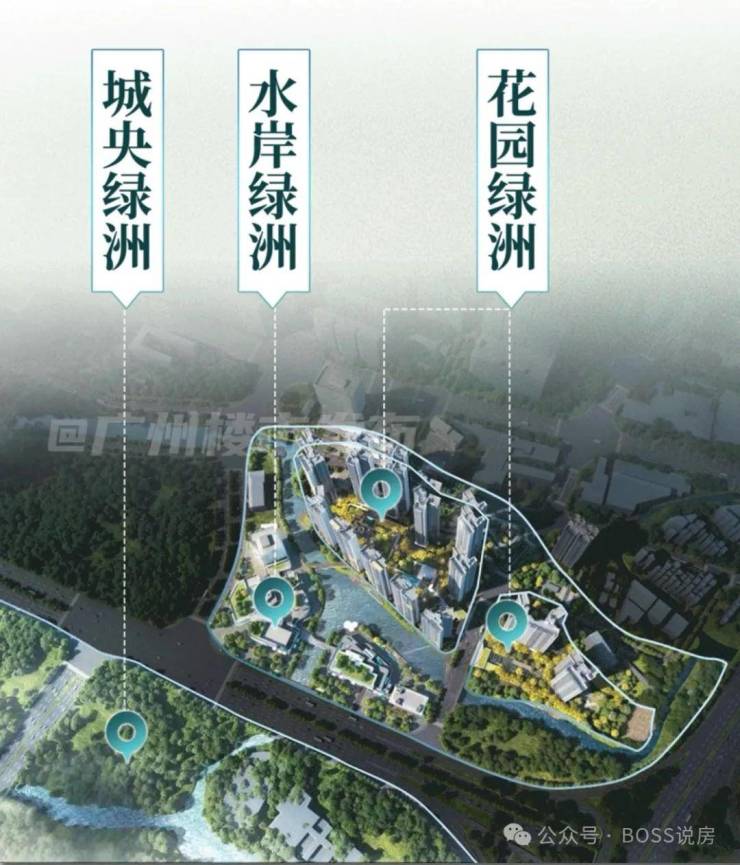 园林设计:享受“一河环抱,两岸三园”的优美环境中,也叫“三洲之上”
