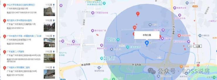 中海大境附近涵括多所甲级医院,中山大学孙逸仙纪念医院(南院区),南方医科大学中西医结合医院,广州中医药大学第一附属医院第二门诊部,广东省第二人民医院,广州医科大学附属第二医院等,为健康保驾护航;