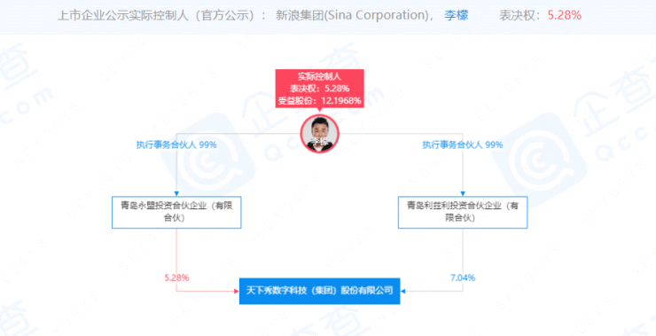 经过股权穿透,焦点财经发现,天下秀的大股东是ShowWorld HongKong Limited,其背后的实控人是新浪,天下秀公示的实际控制人为新浪与李檬。目前,新浪通过ShowWorld HongKong Limited持股18.4%,而微博则持股8.17%,为第二大股东。