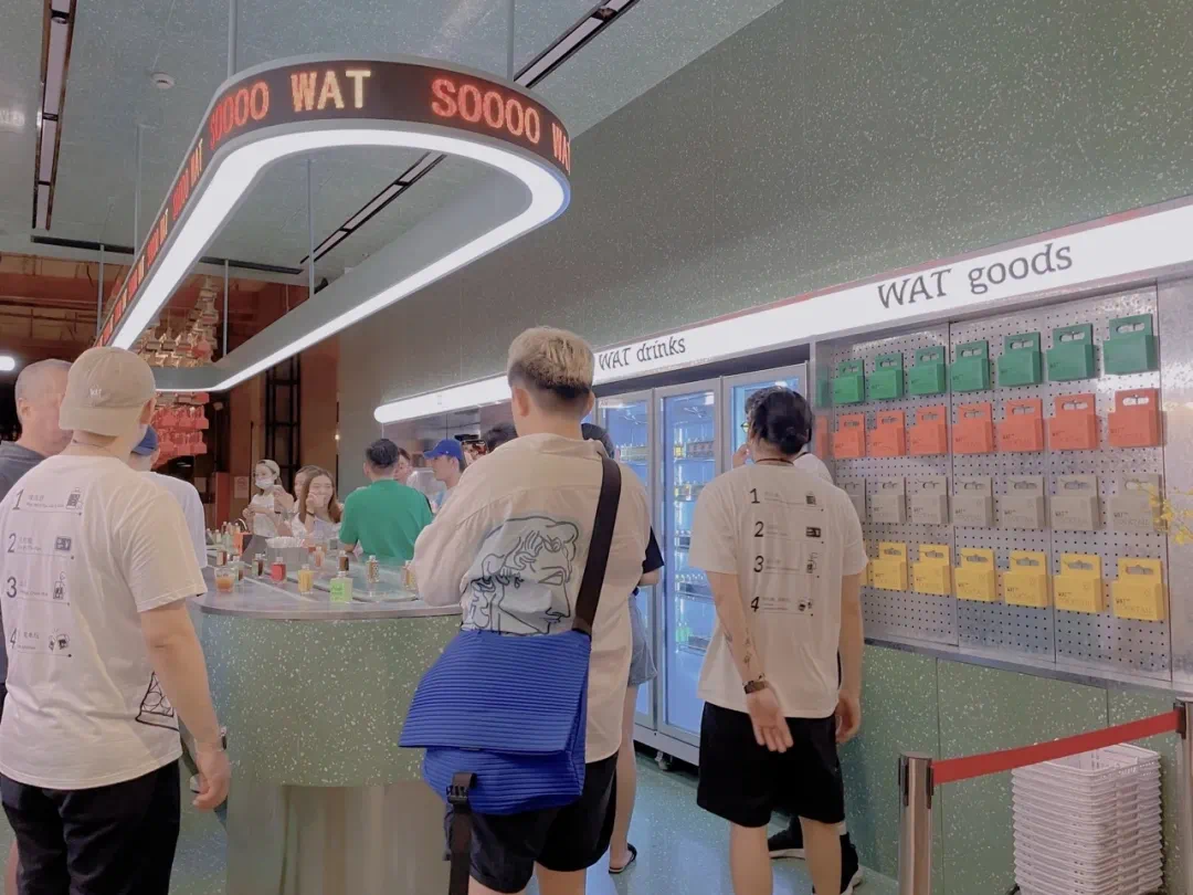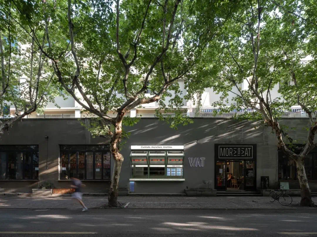 上海市静安区巨鹿路758号的“餐饮+”街区MORETHAN EAT。WAT上海首店在白天以酒类零售为主,夜晚则是酒吧。