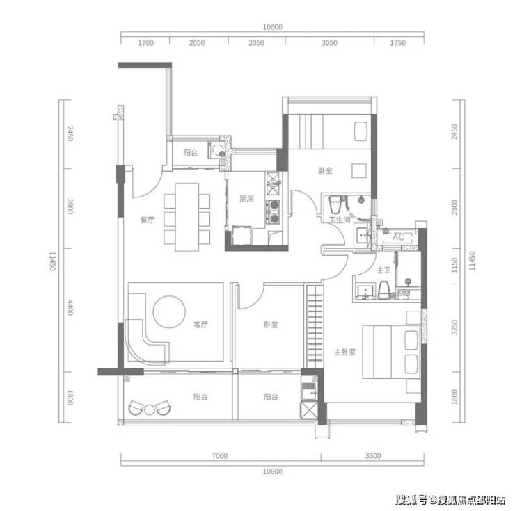 D户型建面约173㎡,4房2厅2卫