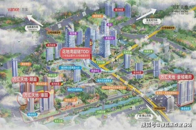 ✅🗽万科理想花地销售中心电话☎:400 1130 755【售楼处已认证】🗽万汇天地朗庭距离1号线花地湾地铁站800米,步行10分钟,万汇天地将“高线公园”引进广州,进化全新的天空花麓系统,缝合了商业、写字楼等复合业态以及地铁花地湾站的空间,打造以地铁1号线(已开通)、25号线(规划中)为基低的是双核TOD。