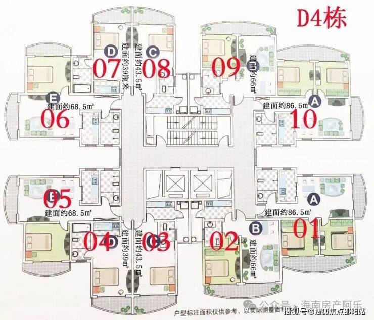 A、B、C、D、E户型分布于D4栋