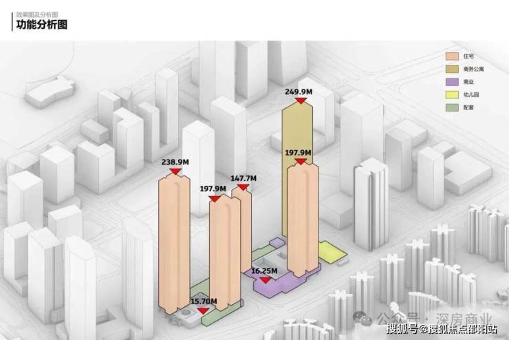 • 项目规模:占地3.85万㎡,总建面26.3万㎡,涵盖住宅17.7万㎡、商务公寓7万㎡、商业1万㎡及幼儿园等公配