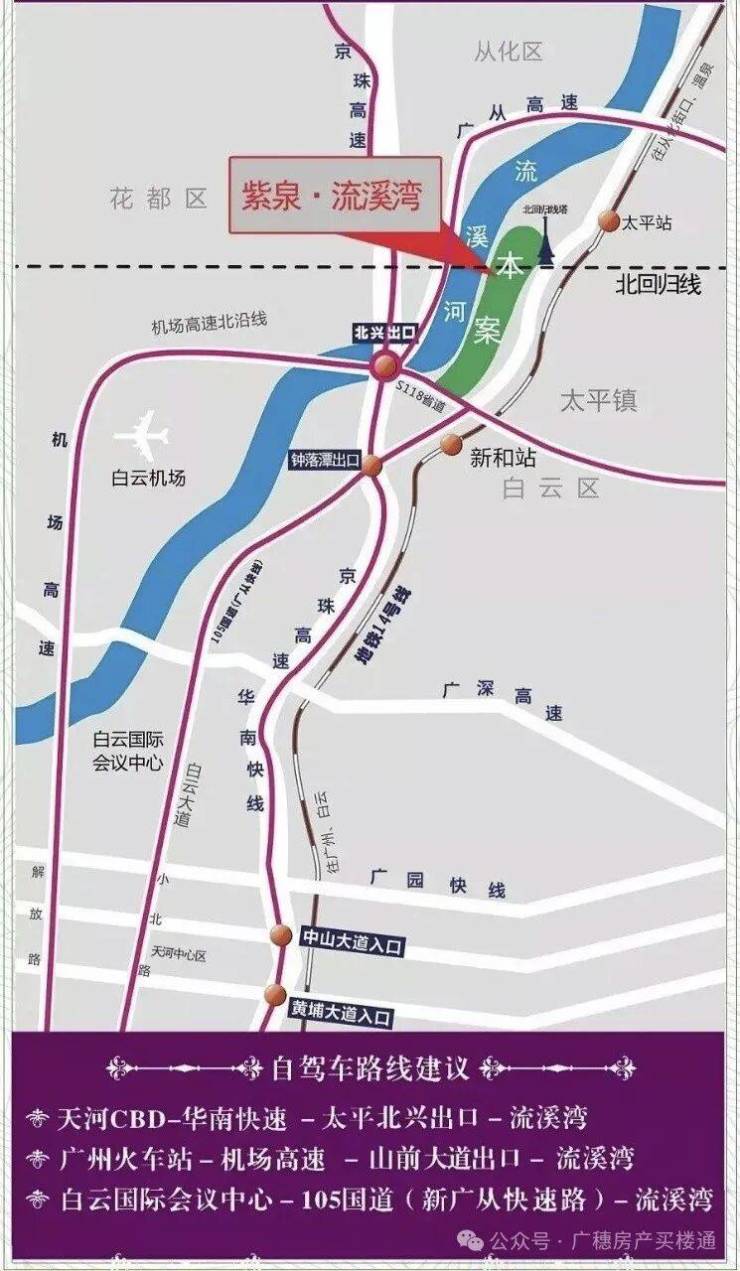 紫泉流溪湾位于从化太平镇105国道流溪河旁(北回归标志塔旁),由广州紫泉房地产开发有限公司开发。紫泉流溪湾位于流溪河畔,九龙湖旁,北回归森林公园,助您修身养性。紫泉流溪湾占地面积3000亩,首期500亩251席纯独立大宅,容积率3.2;私家电梯,居家望远极目千里;首期开盘,300万入住300平方米珍稀传世府邸。