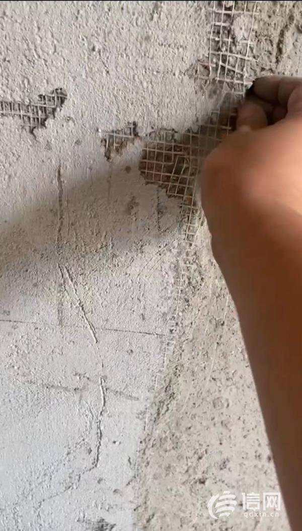 吕先生表示,徐先生家的这种情况就是抹灰太薄了,没有盖住挂网。小区总共有两三户业主家里出现了类似的情况,现在都在进行维修中。而维修的方法也比较简单,将原来的挂网铲掉,重新挂网后再进行抹灰处理即可。