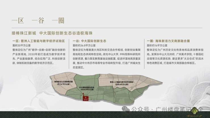 中大国际创新生态谷:总面积约36.8平方公里,定位为粤港澳大湾区科技交流合作枢纽、创新创业集聚高地和生态休闲特色空间。打造宜居、宜商、宜业、宜游的广州城央生态居住区。
