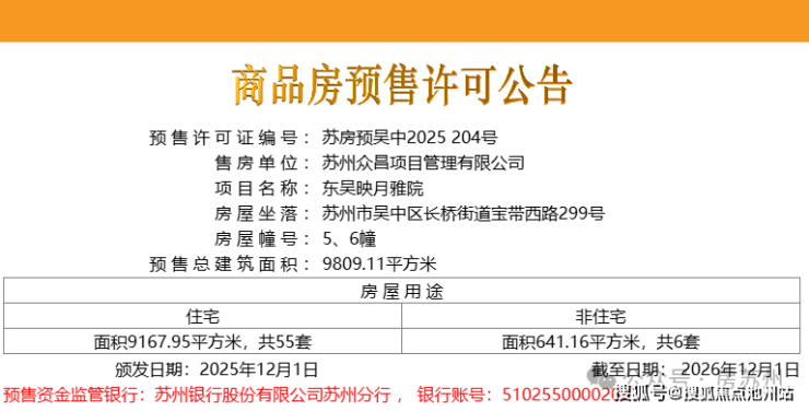 2025年12月1日,项目第三批房源领证,共55套,位于5/6#,货值约3.21亿。
