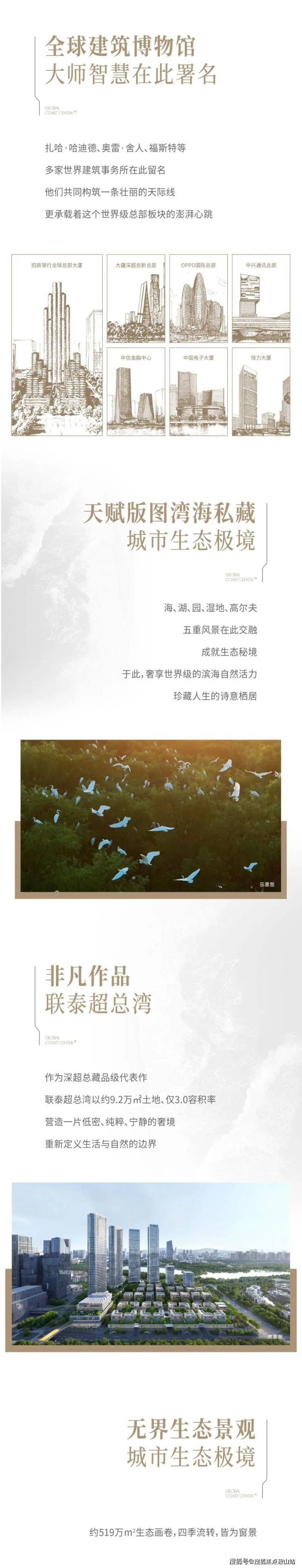 坐拥中国战略定位为全球城市巅峰之作的深圳湾超级总部基地东门户:位于海洋与湿地的中央,三面永久生态景观中心占位,一面全球五百强总部建筑艺术博览园景观。户户视野非凡,百年一遇。