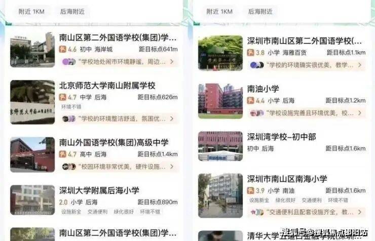 项目周边有北师大附小,南山外国语学府学校,南二外学府中心南油小学,深圳大学附属后海学校,北师范大学附中,深圳湾学校等