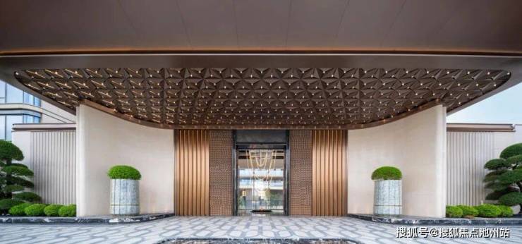 大门以景墙与水景延展视觉张力,诠释酒店式高定落客礼仪,兼具江南贵雅与显赫气度。
