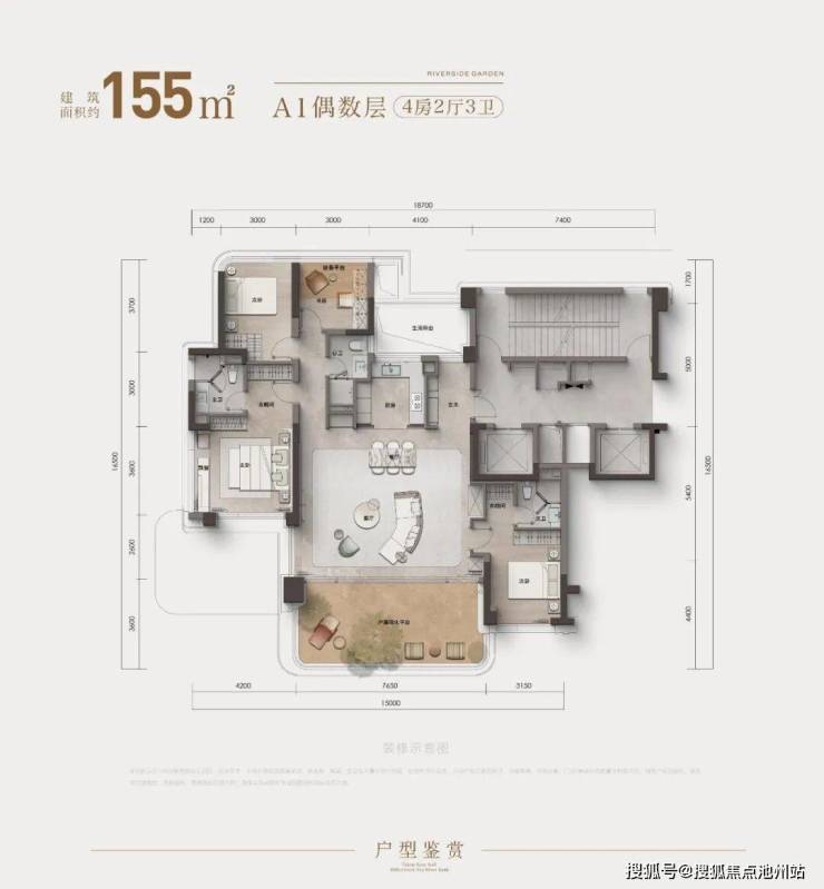 约155㎡偶数层户型采用四房三卫布局,南向面宽约达7.65米,这样的面宽尺度,在宁波其它同等户型中首屈一指,同时客厅南向衔接近27㎡超大露台,打破空间界限,适配各种兴趣生活场景。