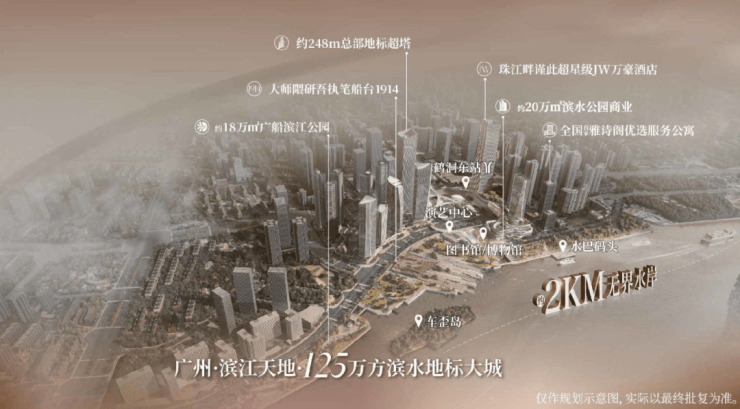 全球最大造船集团【中船集团】联手上海HBC缔造者【中信泰富地产】于白鹅潭滨江精粹亲水的2KM岸线,缔造约125万方广州新地标--广州滨江天地,打造一座浓缩版的珠江新城。