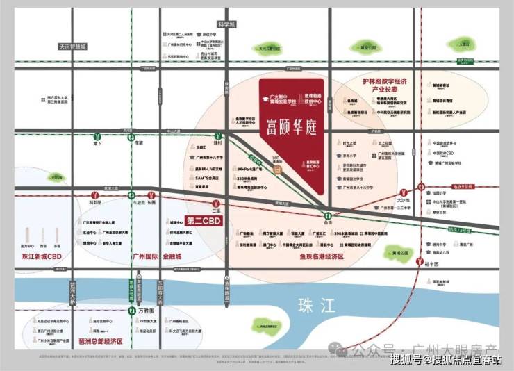 富颐华庭项目总用地约80万㎡,总建面约230万㎡,集居住、商业、园林、教育等各方面配套于一体,处广州第二CBD核心地段,是区域功能丰富、设施齐备、近年来绝无仅有的全配套市中心大盘。