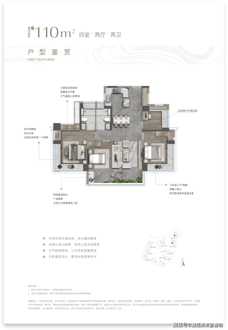 C位央景:3&4#压轴板楼正居园区C位,众星捧月,居中显贵,瞰山揽园,尽揽一线大南山景、央景园林,楼下即观山泳池、水庭院瀑布,环幕视界,风光万千。