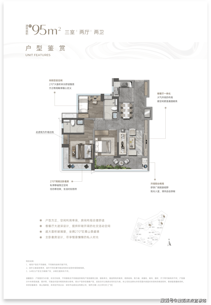 主卧小家化:主卧+衣帽间+独立卫浴+270°转角巨幕飘窗。