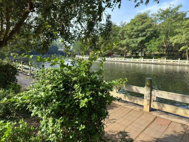 道旁绿树荫浓,与波光粼粼的河水相互掩映,更倒映出建筑的形象,一副优美且休闲惬意的画卷铺陈开来,为社区增添了一道不可多得的风景线。