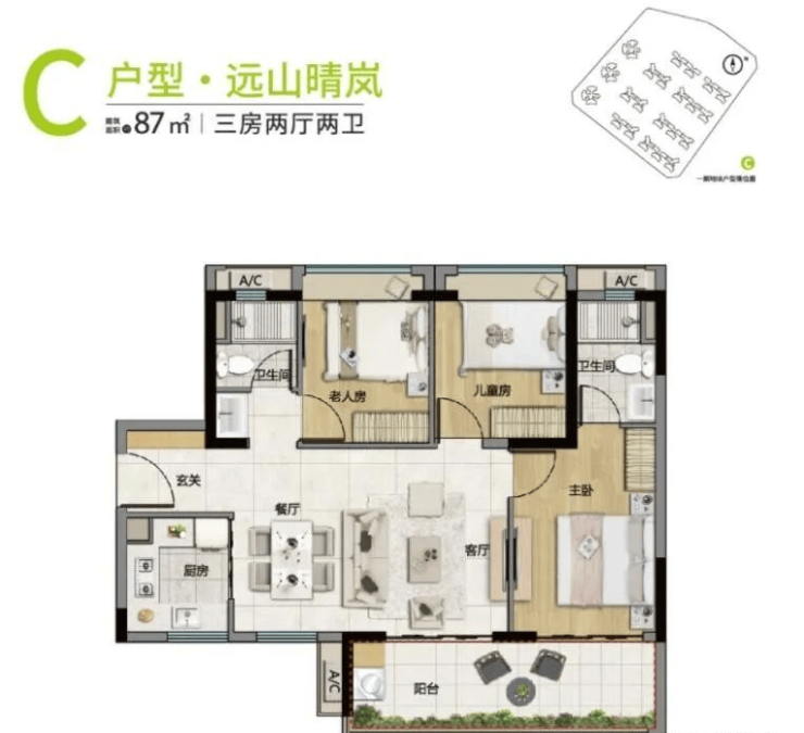 【约87㎡ 南向3房2卫】