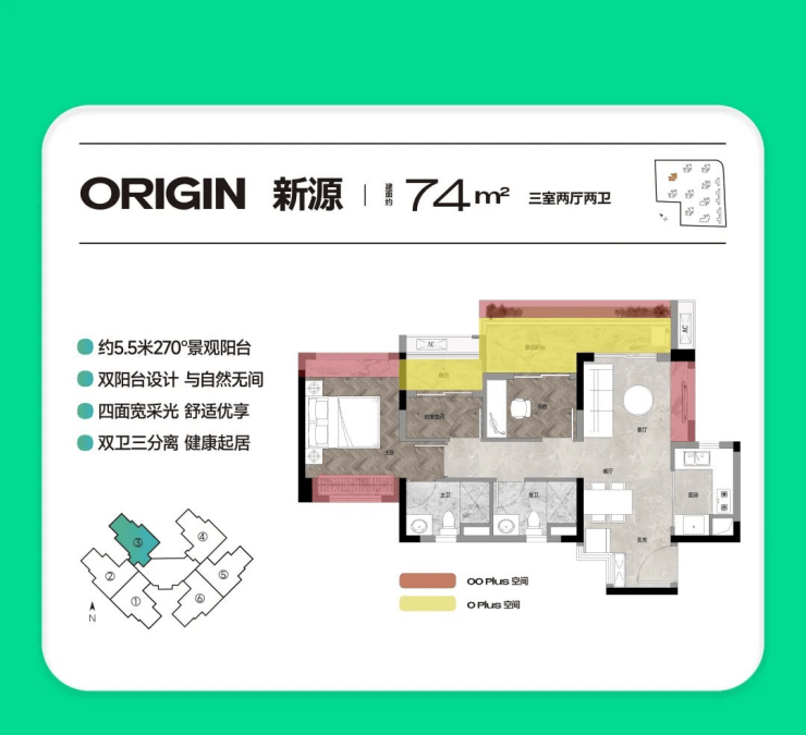 【户型卷】74㎡三房两卫,约5.5米阳台❗