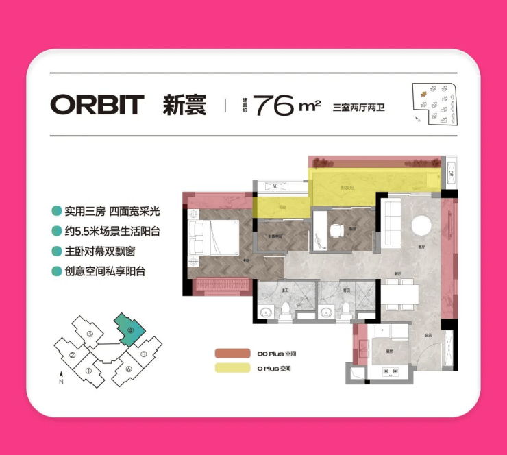 【约76㎡3房2厅真2卫】卷出天际
