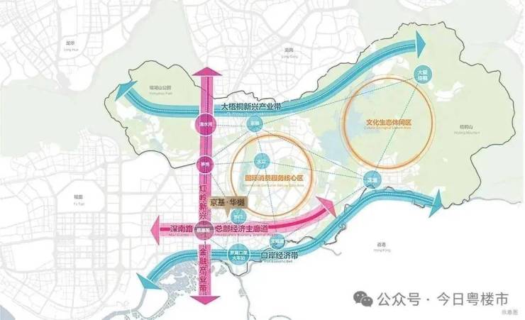 双枢纽:罗湖口岸跨境枢纽、罗湖北站(建设中)高铁枢纽