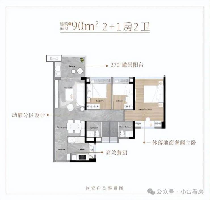 南北通透双阳台设计,瞰景阳台约6.9米